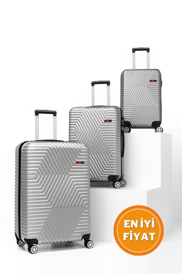 G&D Polo Suitcase Abs 3’lü Gümüş Gri Lüx Valiz Seyahat Seti 600.03-set