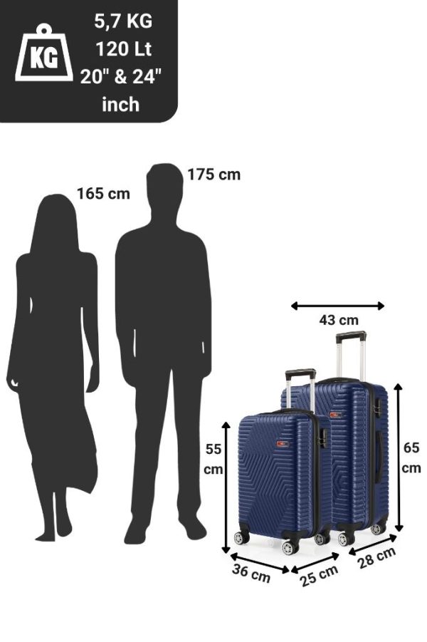 G&D Polo Suitcase Abs Kabin Ve Orta Boy Lacivert 2'li Valiz Seti 600.04-Set-OK