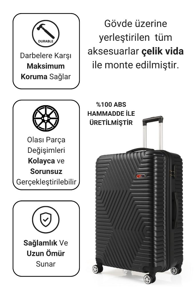 G&D Polo Suitcase Abs Orta Ve Büyük Boy Siyah 2'li Valiz Seti 600.01-B