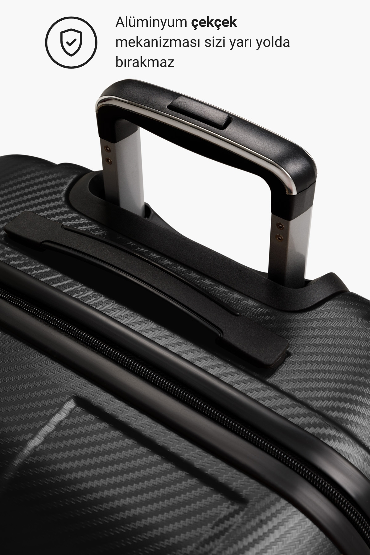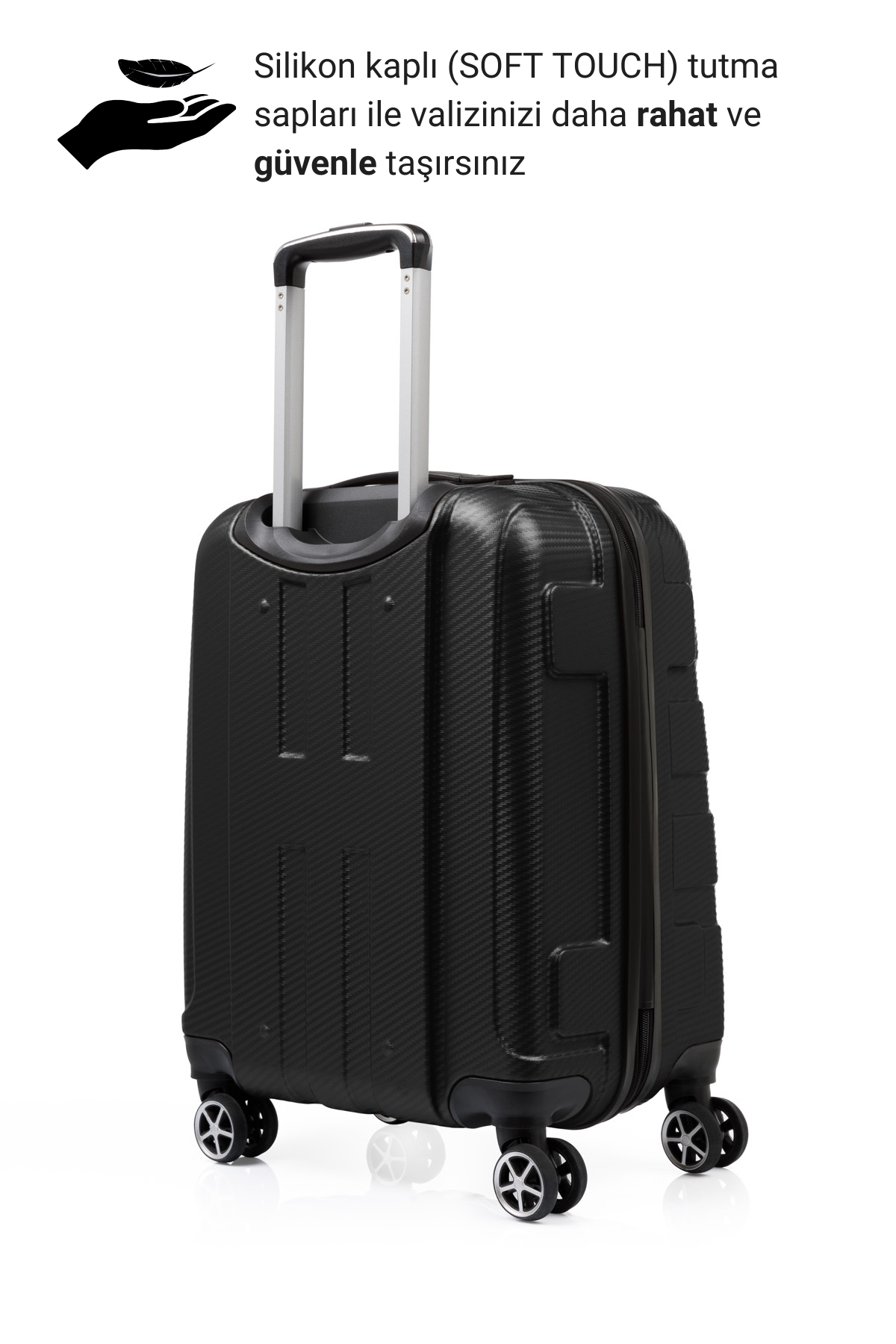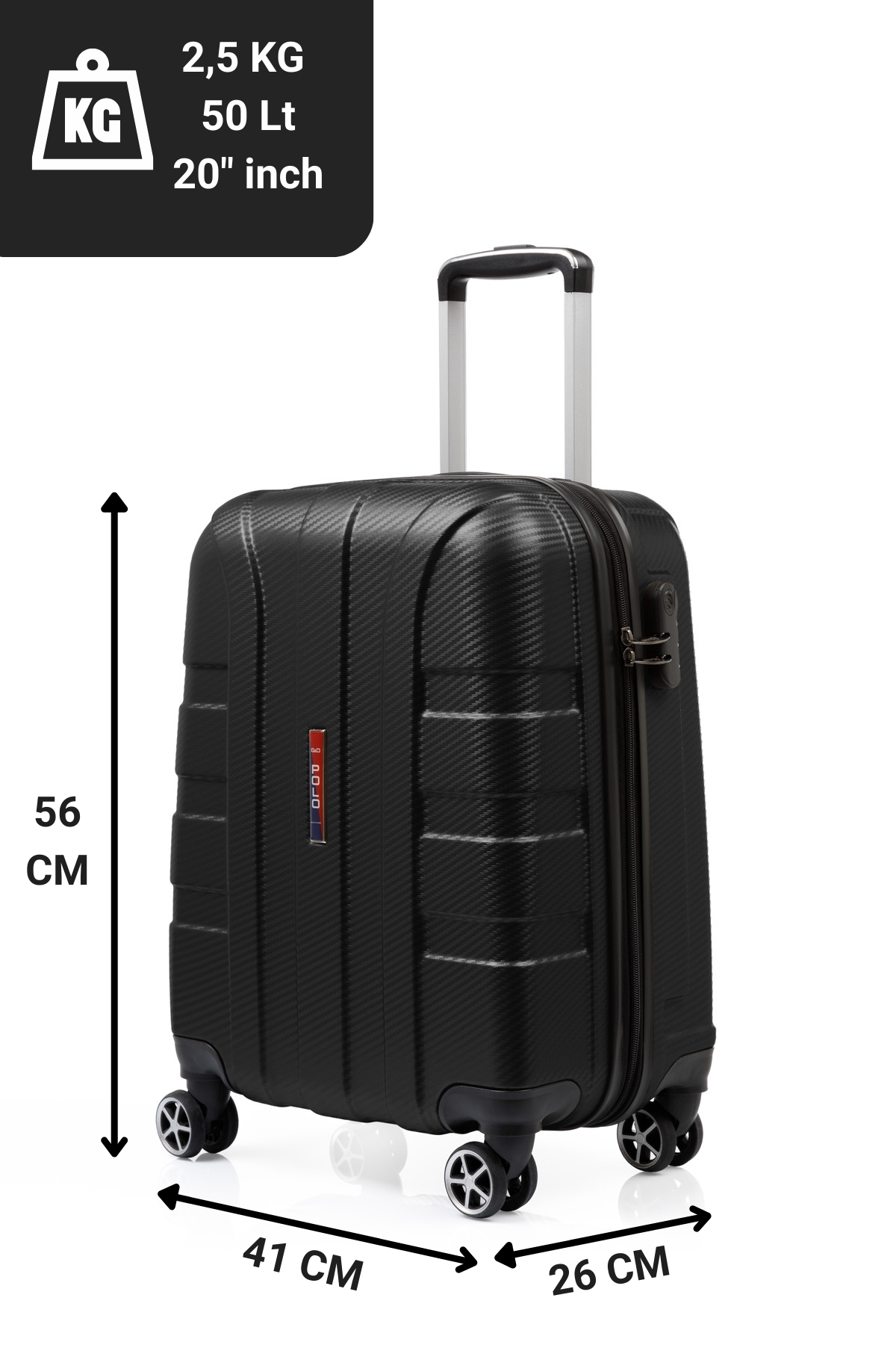 G&D Polo Suitcase Karbon Desenli Siyah Kabin Boy Valiz 550.01-K