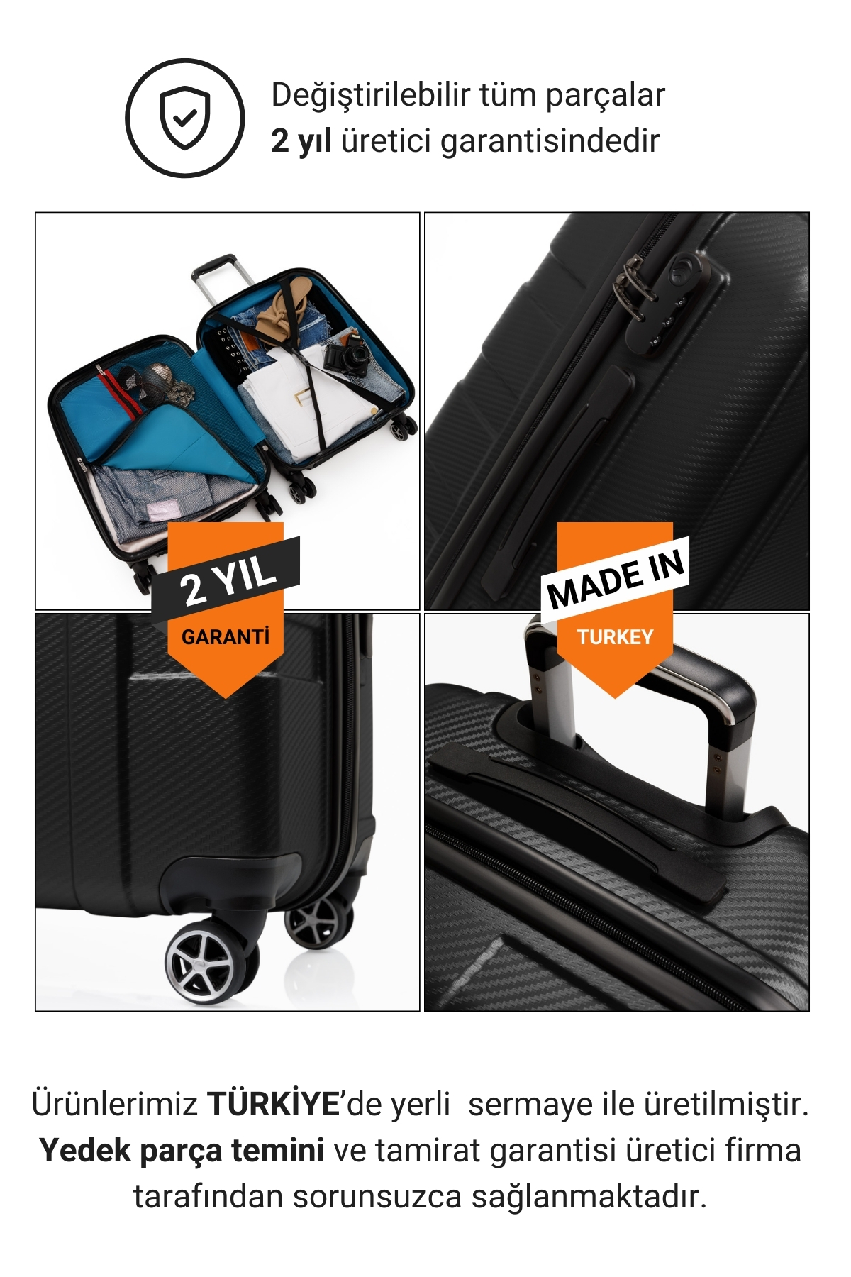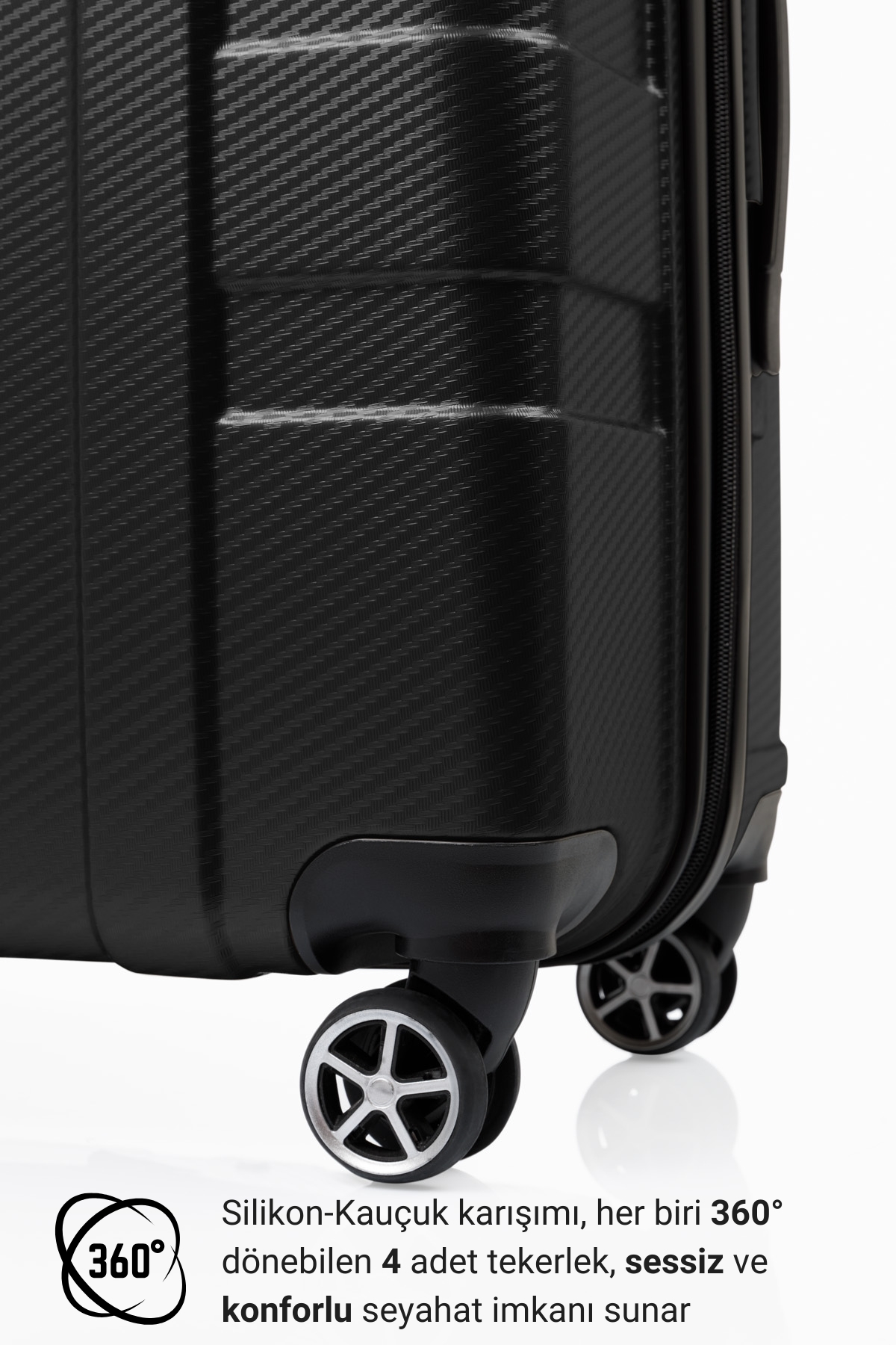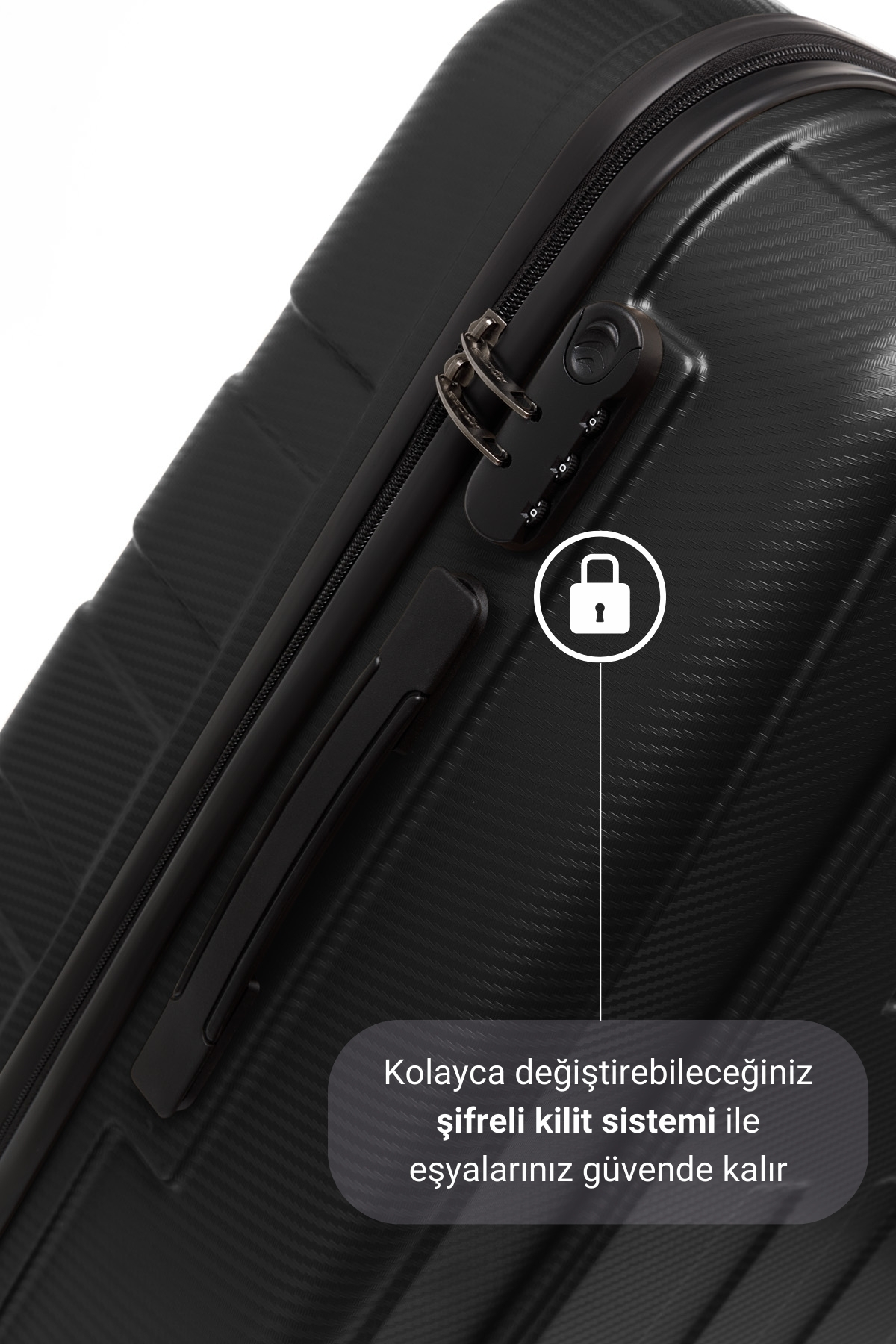 G&D Polo Suitcase Karbon Desenli Siyah Kabin Boy Valiz 550.01-K