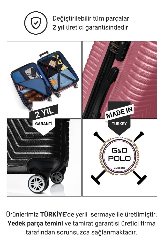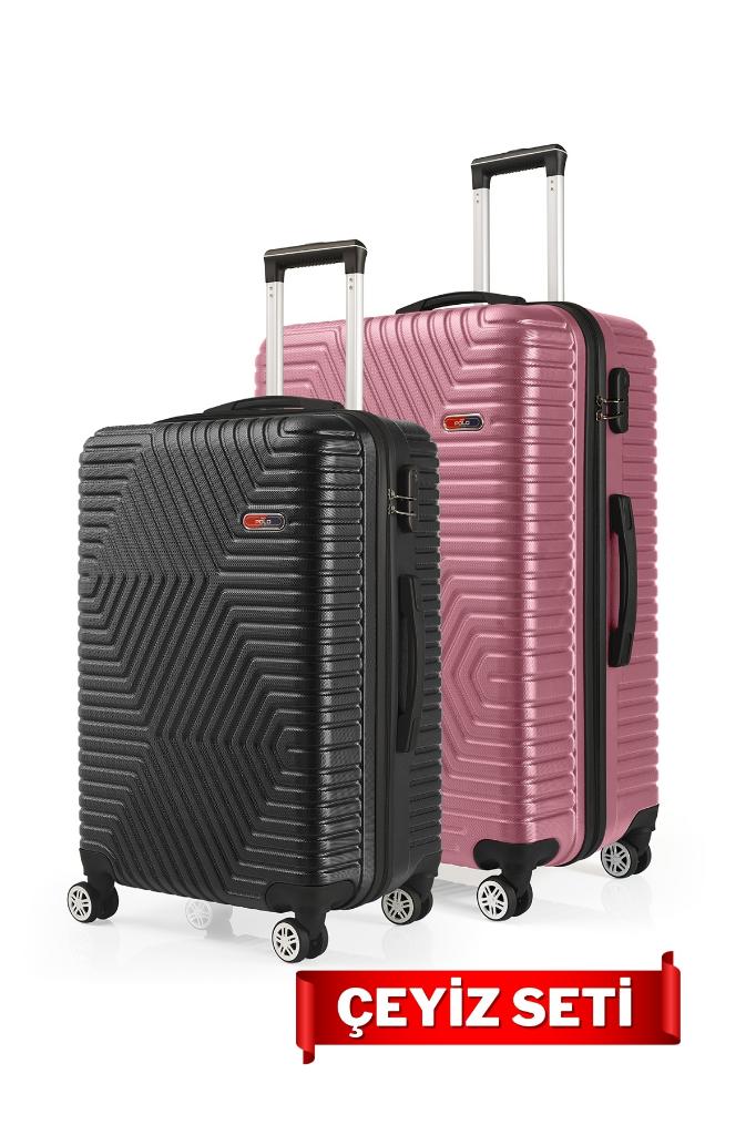 G&D Polo Suitcase Orta Ve Büyük Boy Gül-Siyah 2'li Çeyiz Valiz Seti