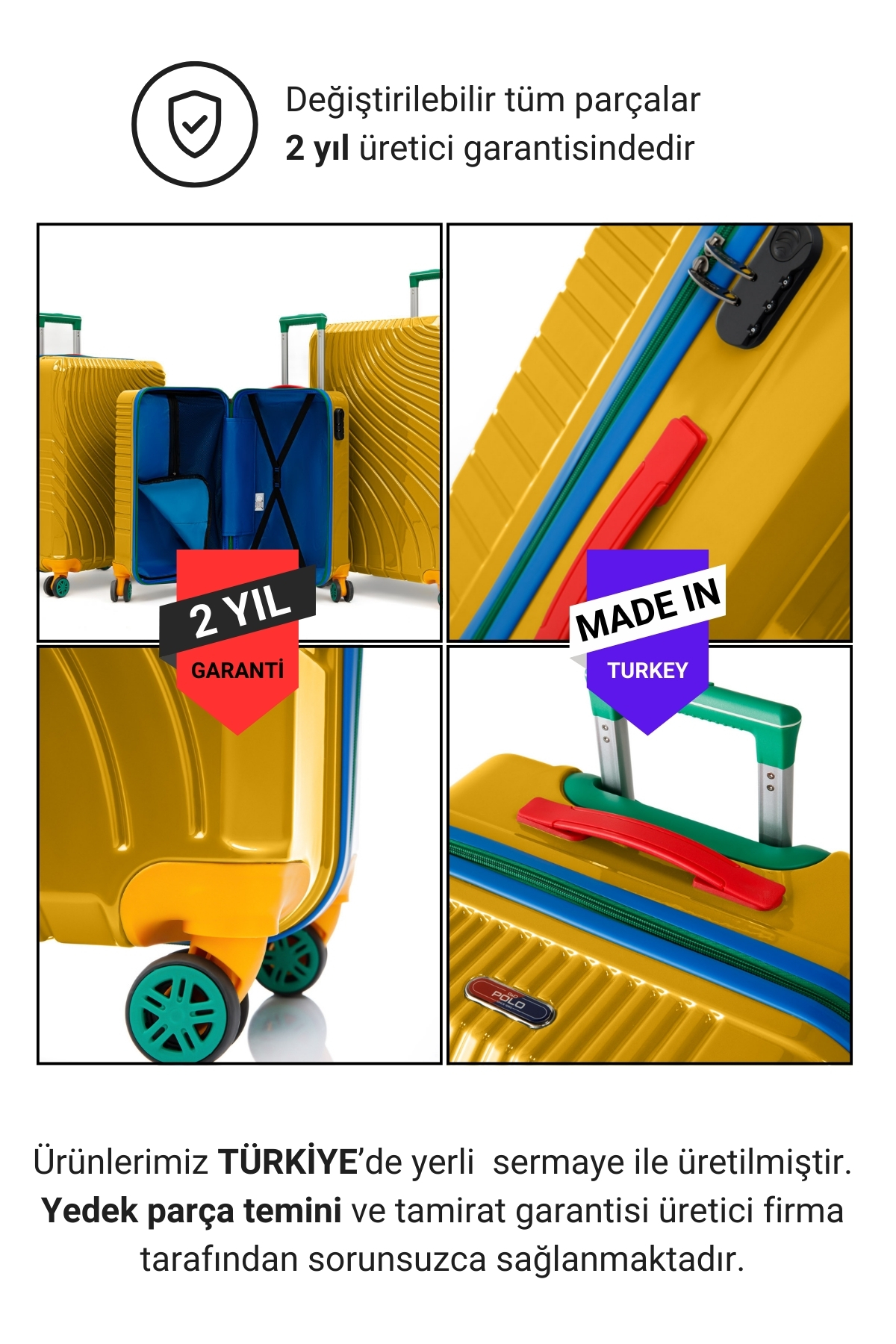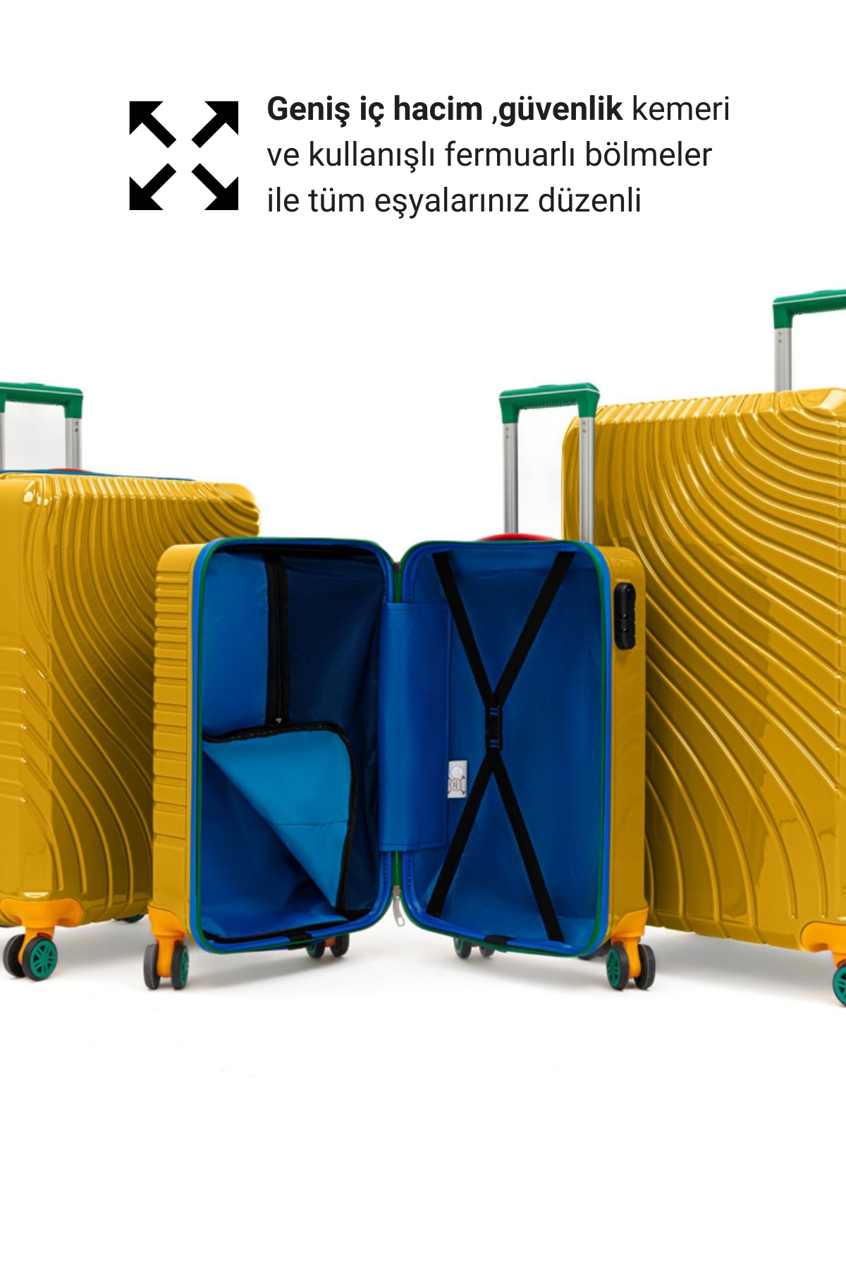 G&D Polo Suitcase Policarbon Sarı 3’lü Valiz Seti 700G.12-Set